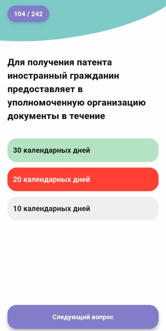 Выученные вопросы автоматически заменяются на новые, пока не пройдете все 242 вопроса