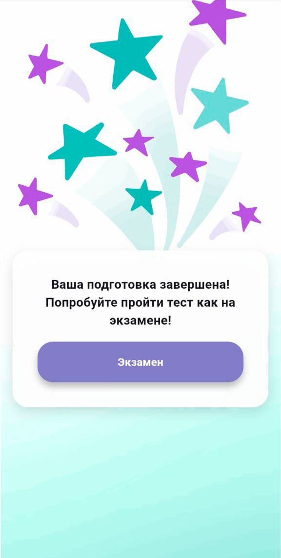 Программа сообщит Вам, когда Вы будете готовы к экзамену